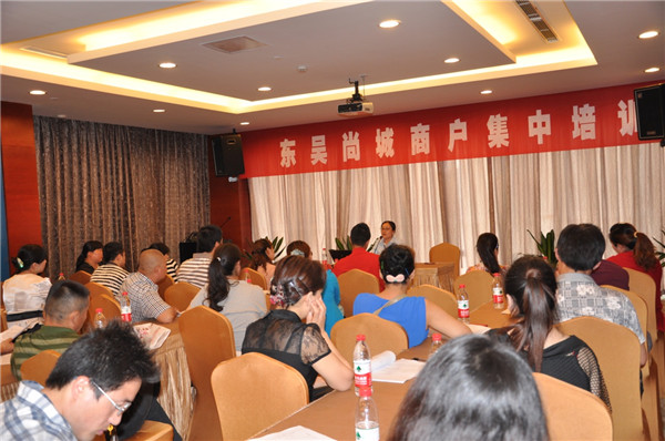 為確保東吳尚城7月中旬順利開業(yè),6月3日起,開發(fā)公司組織開展了入駐商戶集中培訓活動,40余家簽約商戶參加培訓。在當天上午的培訓中,開發(fā)公司相關(guān)部門負責人向商戶介紹了工程進展、入場裝修注意事項以及物業(yè)管理等方面的事宜,并詳細解答了商戶提出的問題。