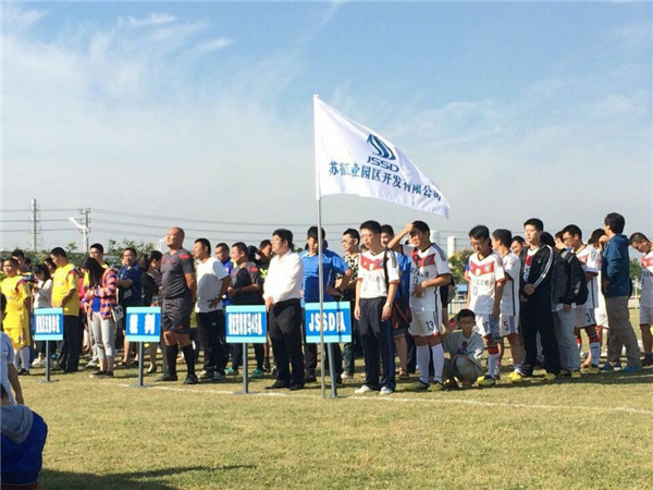 9月13日上午,園區(qū)生產(chǎn)力中心的草坪上隨著園區(qū)黨工委副書記、管委會(huì)副主任駱敏女士的一聲令下,蘇宿園區(qū)“可成杯”第三屆足球聯(lián)賽正式開始了。園區(qū)開發(fā)公司全體隊(duì)員滿懷激情、熱情萬(wàn)丈健步進(jìn)入球場(chǎng)。