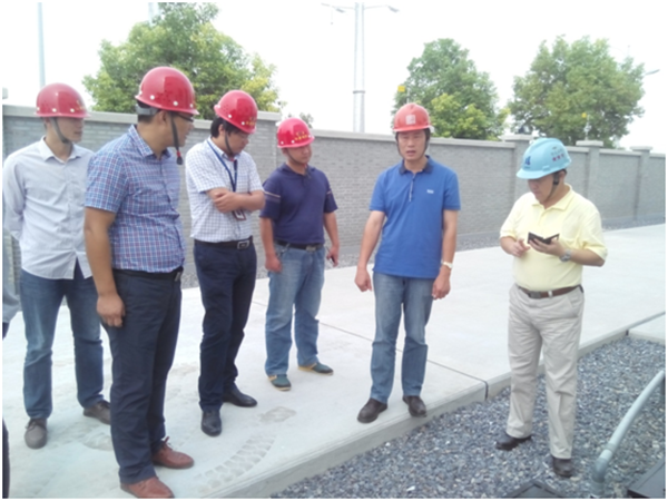 進入許莊變電站后,劉建華為前來觀摩學習人員做了現場講解,重點介紹了站內道路、圍墻、外墻、附屬雨污水管道工程,在施工中采用科學工藝和先進的管理辦法。參觀單位對許莊變電站的各項工程的觀感質量,表示了肯定和贊揚,紛紛表示要加強總結和學習。