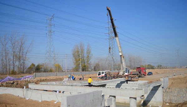 近日,可達科技配套項目天柱山路跨民便河橋梁10米空心板梁正式開始吊裝。