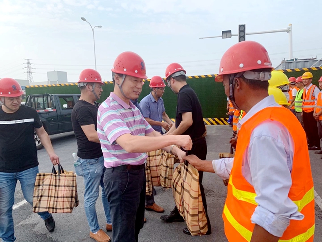 8月21日下午,開發(fā)公司副總裁劉建華帶隊(duì)慰問市政工程項(xiàng)目現(xiàn)場(chǎng)工人,給他們送去毛巾、香皂、洗發(fā)水等防暑降溫用品,感謝他們對(duì)園區(qū)市政工程的建設(shè)作出的貢獻(xiàn)。