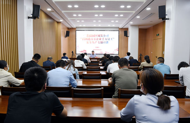 為深入習(xí)近平總書(shū)記關(guān)于安全生產(chǎn)的重要論述和指示批示精神、安全生產(chǎn)“十五條”硬措施、新《安全生產(chǎn)法》以及安全生產(chǎn)大檢查、重點(diǎn)行業(yè)領(lǐng)域安全生產(chǎn)百日攻堅(jiān)行動(dòng),認(rèn)真落實(shí)全省“百團(tuán)進(jìn)百萬(wàn)企業(yè)千萬(wàn)員工”安全生產(chǎn)宣講活動(dòng)的安排部署。9月23日下午,宿遷市蘇宿工業(yè)園區(qū)城市發(fā)展投資有限公司董事長(zhǎng)劉建華作安全生產(chǎn)專(zhuān)題宣講。