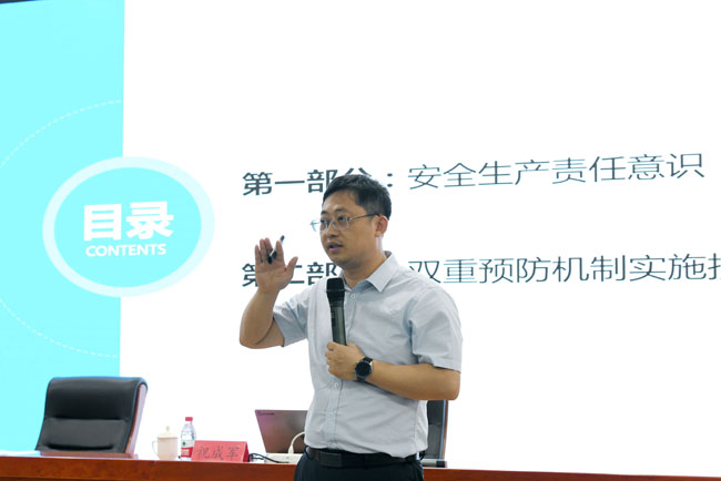 本次培訓(xùn)邀請(qǐng)國(guó)家注冊(cè)安全工程師祝成軍進(jìn)行授課。培訓(xùn)會(huì)上,祝成軍圍繞開展安全生產(chǎn)雙重預(yù)防體系建設(shè)工作的意義,相關(guān)法律法規(guī)、標(biāo)準(zhǔn)等內(nèi)容進(jìn)行了詳細(xì)講解,并結(jié)合具體事故案例,對(duì)如何理解雙重預(yù)防體系、如何劃分作業(yè)單元、如何進(jìn)行風(fēng)險(xiǎn)辨識(shí)與評(píng)價(jià)等內(nèi)容進(jìn)行了專門的講解。