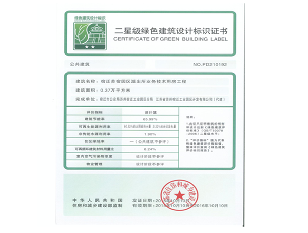 園區(qū)派出所業(yè)務(wù)技術(shù)用房工程通過(guò)國(guó)家二星級(jí)綠色建筑認(rèn)證