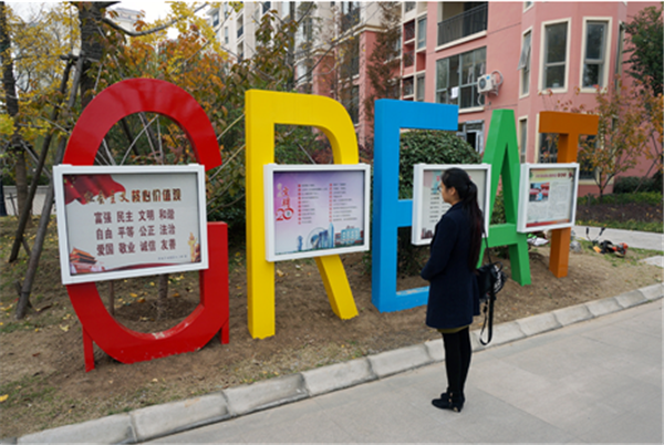 紅黃藍(lán)綠橙,多彩的字母組成英文單詞“GREAT”,中間鑲嵌四個(gè)方形宣傳框,今年社區(qū)在明日星城和恒大綠洲小區(qū)試點(diǎn)放置兩個(gè)宣傳欄。居民看著社區(qū)移走小區(qū)大門口的多個(gè)移動(dòng)立牌,放置這樣的宣傳欄紛紛點(diǎn)贊。這次設(shè)立“GREAT”立體廣告牌,不僅美化了小區(qū)環(huán)境,走起了國(guó)際范,還有著特殊的意義,“GREAT”具有美好向上的意思,社區(qū)希望提倡積極生活、追求美好的社區(qū)文化。