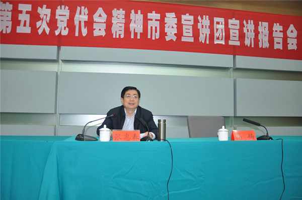會(huì)上,張惠春圍繞市第五次黨代會(huì)基本情況,五年來的主要成績和經(jīng)驗(yàn),今后五年奮斗目標(biāo)、工作主線及重點(diǎn)任務(wù)等幾個(gè)方面詳細(xì)解讀了市第五次黨代會(huì)精神,報(bào)告內(nèi)容豐富、內(nèi)涵深刻。