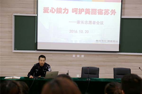 校園安全是學(xué)校發(fā)展的首要工作,更是創(chuàng)建文明校園的重要保障。近日,宿遷市蘇州外國語學(xué)校召開了家長志愿者會議,宿遷市交警支隊(duì)干警和五十名愛心家長以及學(xué)校相關(guān)行政人員參加了本次活動(dòng),大家齊聚一堂,共同討論并確定了本學(xué)期的家長志愿者工作安排。